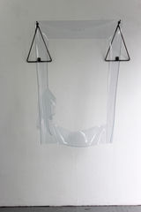 Le signe de plongée en réserve « couper » accentue ce copier-coller. L’aspect volontairement fluide, mou, brillant et transparent de la pièce renvoie à l’idée d’interface, d’écran et de liquidité de l’information numérique.